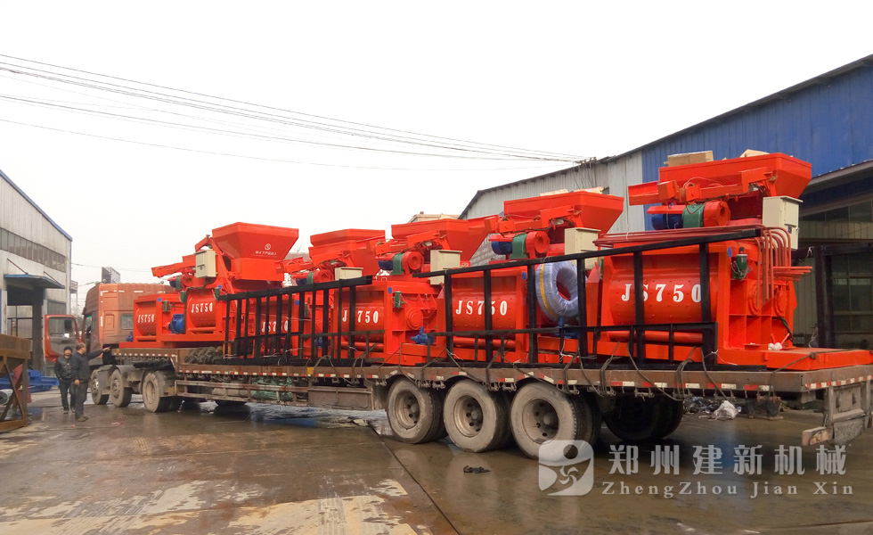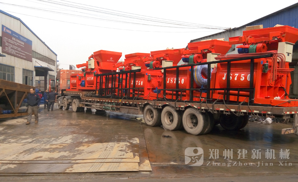 2015年12月1日,6臺(tái)JS750強(qiáng)制式混凝土攪拌機(jī)在鄭州建新機(jī)械廠家完成裝車(chē),發(fā)往河南周口。