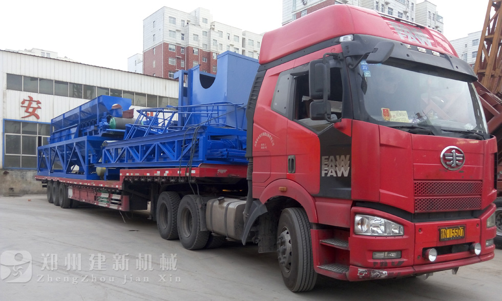 2015年6月8日,發(fā)走一批90型混凝土攪拌站之后,一套PLD1200混凝土配料機在鄭州建新機械裝車,即將發(fā)往周口市太康縣。