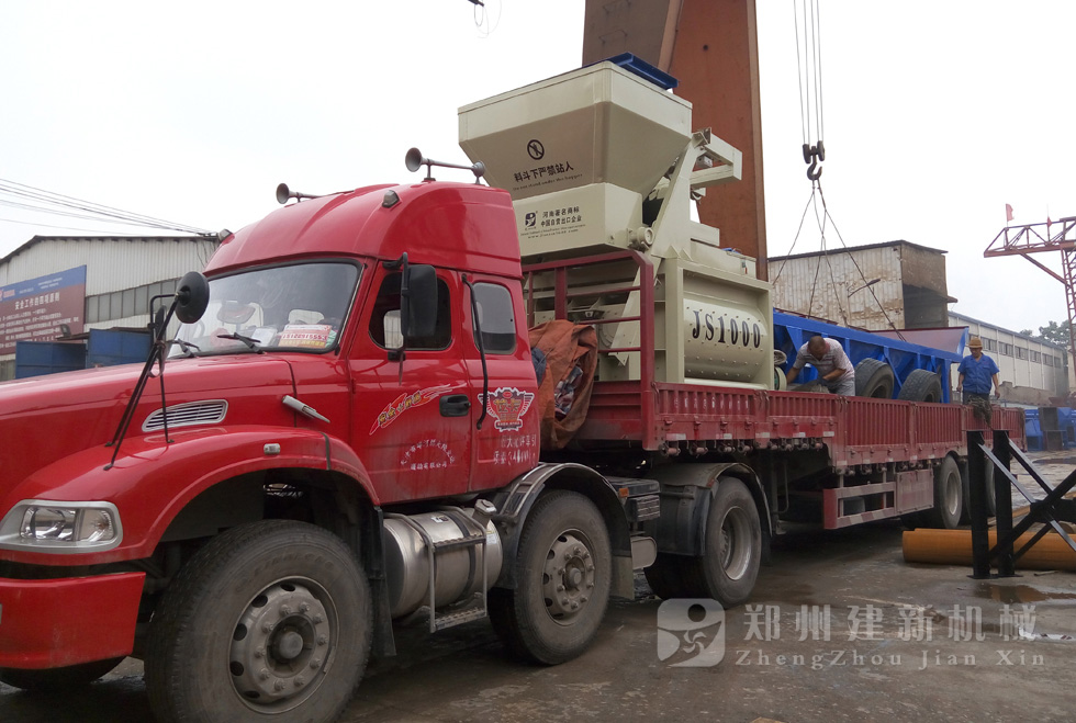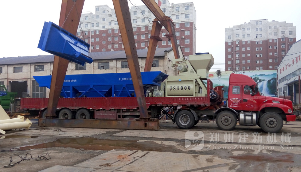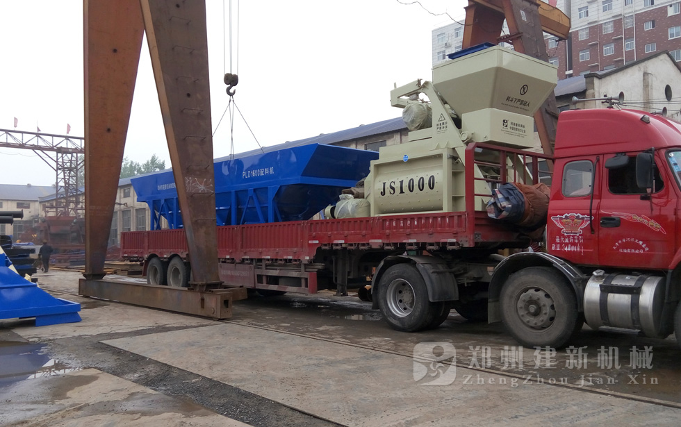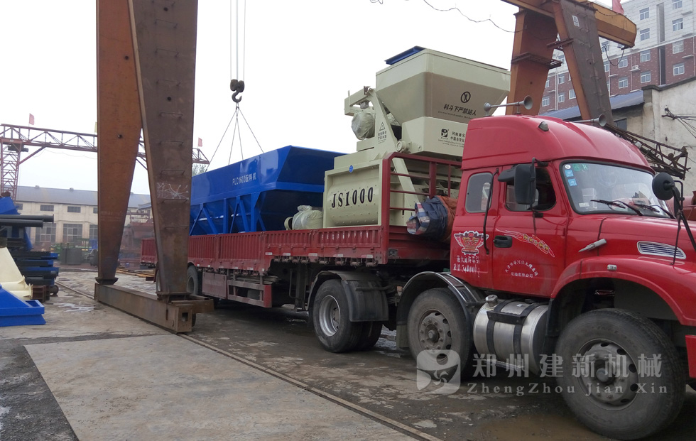 2015年7月16日,一套發(fā)往河北唐山的HZS50混凝土攪拌站設(shè)備在鄭州建新裝車,等待發(fā)貨。