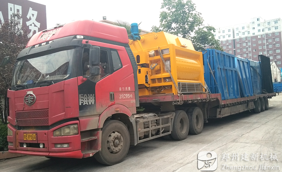 9月14日,一套建新HZS75攪拌站設(shè)備在廠家裝車完畢,等待運(yùn)往甘肅省。圖為運(yùn)輸車輛在建新機(jī)械廠區(qū)門口等待出發(fā)。