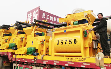 • 近日,建新機械JS750,、JS1000等幾個型號的混凝土攪拌機出貨量較大,有時候一個訂單就會要三到五臺混凝土攪拌機。這不上周就有一批設備發(fā)往湖北,光是其中一輛車就裝了三臺JS750混凝土攪拌機。